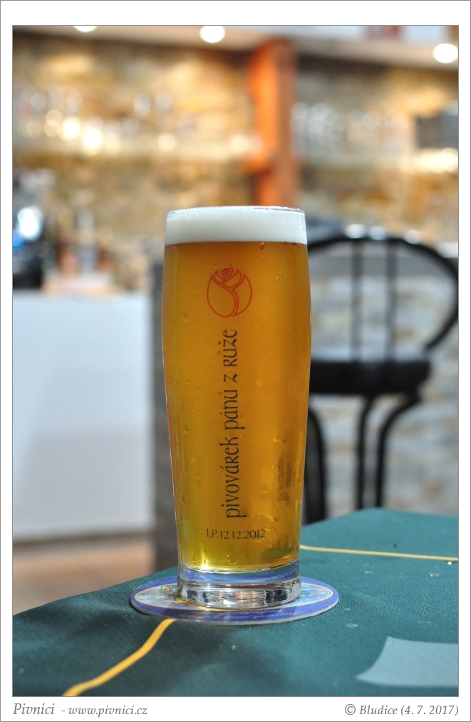 Zlatá barva, čiré, pěkná nižší světlá pěna, dobře drží.Vůně (3 - dobré):