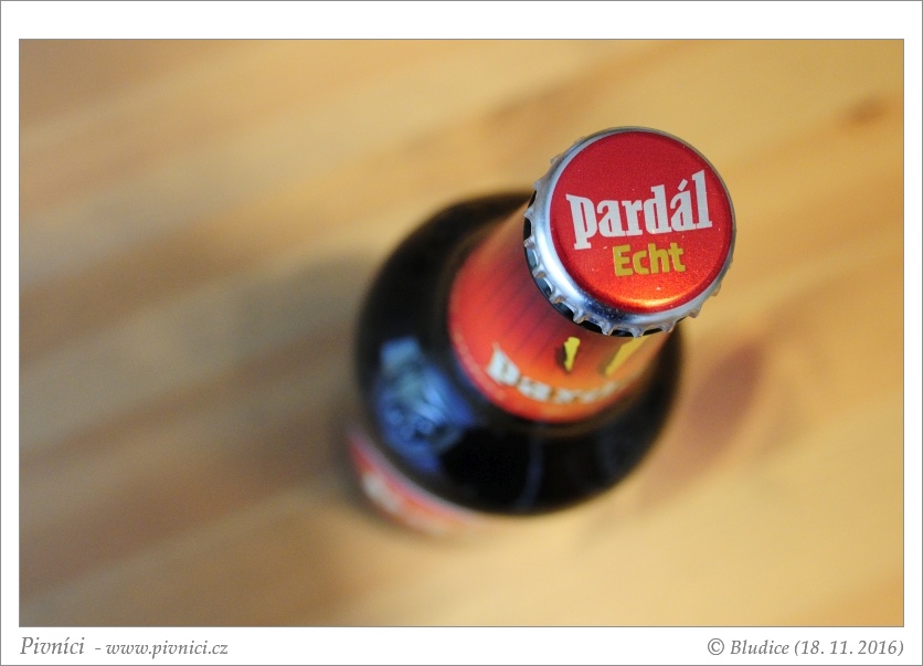 Temně zlatá barva, čiré, slušná světlá pěna, průměrně drží.Vůně (2 - průměr):
