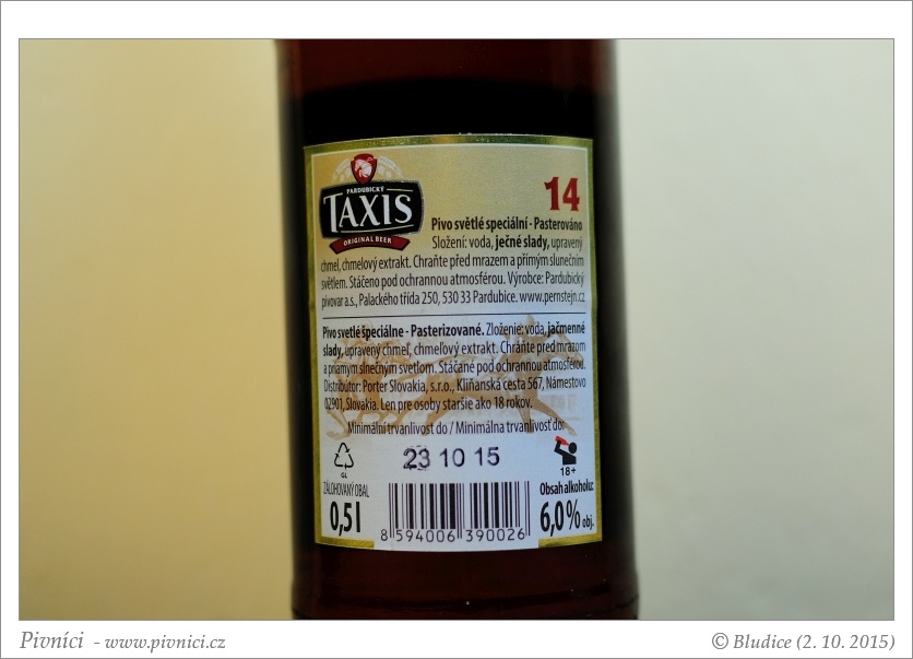 Celkem pitelné pivo s trochu méně příjemnou vůni.Minimální trvanlivost: 23. října 2015