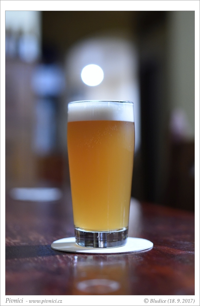Tmavě zlatá barva, velmi zakalené, pěkná světlá pěna, průměrně drží.Vůně (2,5 - lehce nadprůměr):
