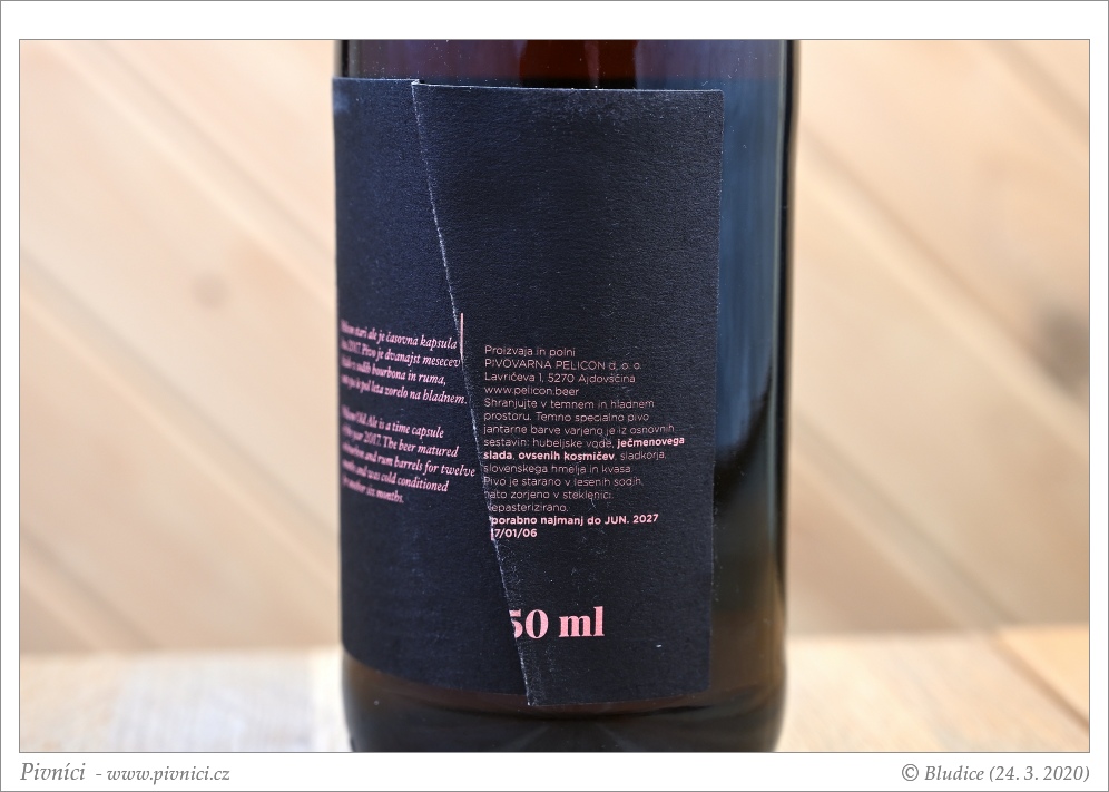 Nižší velmi jemný říz, střední plnost. V chuti sladové, lehce karamelové, medové, s jemnou nakyslostí, střední hořkostí a tóny kandované citronové kůry a citronů, vanilky a bourbonu. Doznívání je sladové, lehce karamelové, s nádechem kandované citronové kůry, vanilky, bourbonu, s lehkou alkoholovou linkou. Alkoholová hřejivost na závěr.Celkový dojem (7,5 - velmi dobré):