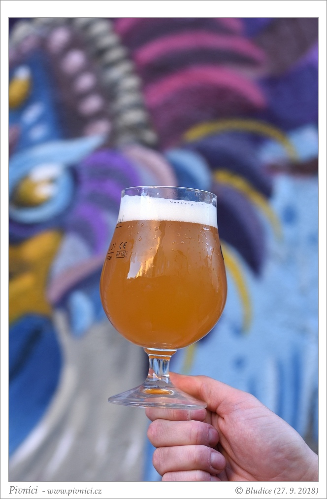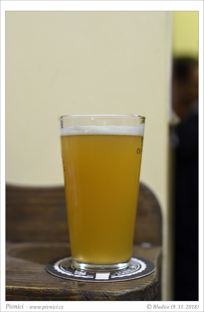 Zlatá barva, více zakalené. Slušná světlá pěna, dobře drží.Vůně (2,5 - lehce nadprůměr):