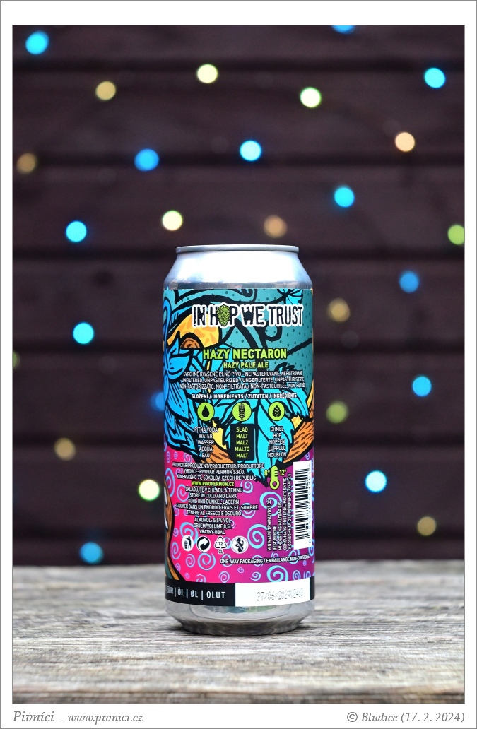 Světle zlatá barva, více zakalené. Pěkná světlá pěna, dobře drží.Vůně (1,5 - nedobré):