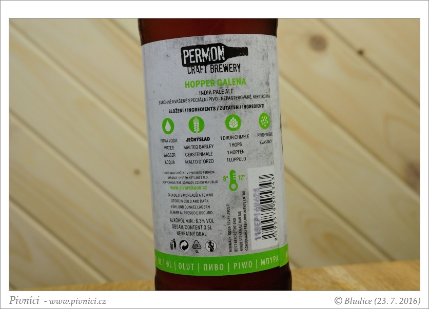 Chutný výrazně chmelený elj. Dobře se pije.Minimální trvanlivost: 11. srpna 2016