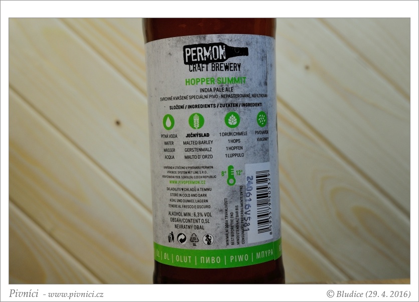 Pivo je dobře udělané, bez vad, ale Summit prostě není nejideálnější chmel na jednochmelové pivo.Minimální trvanlivost: 26. června 2016