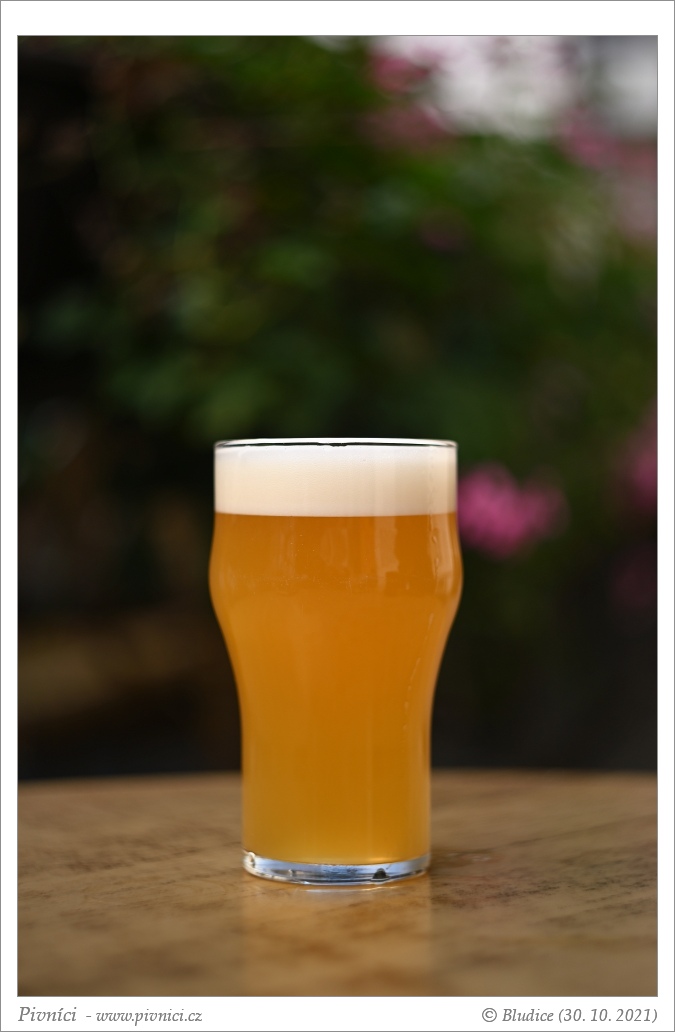 Zlatá barva, více zakalené. Pěkná světlá pěna, dobře drží.Vůně (2,5 - lehce nadprůměr):
