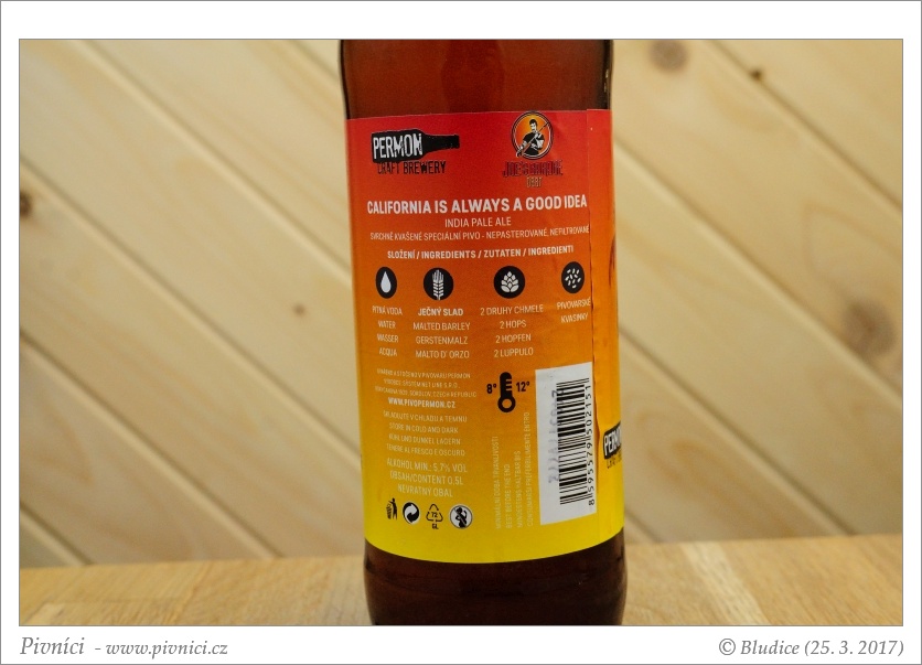 Po delší době fajn pivo z Permona, i když i v něm cítím nepatrný nádech chilli.Minimální trvanlivost: 24. května 2017