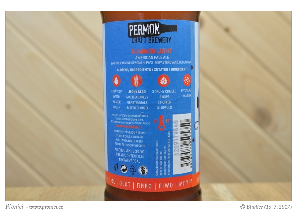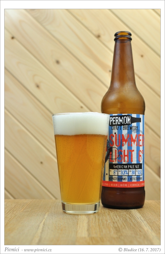 Světle zlatá barva, téměř čiré, pěkná vyšší světlá pěna, dobře drží.Vůně (1,5 - nedobré):