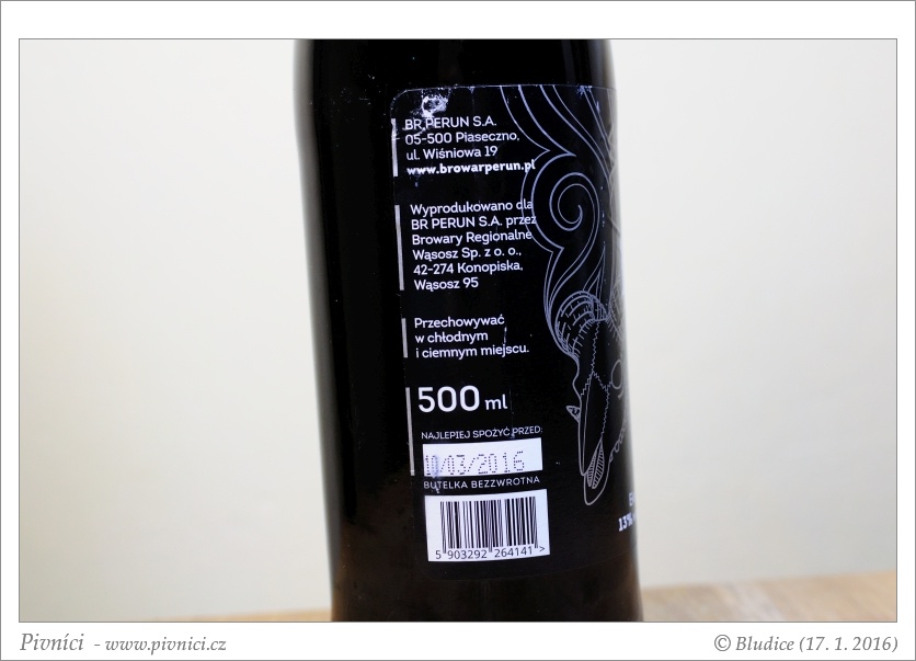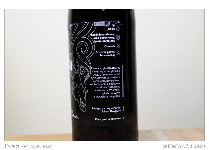 Celkem fajn černá IPA. Sice trochu drsnější, ale pije se dobře.Minimální trvanlivost: 10. března 2016