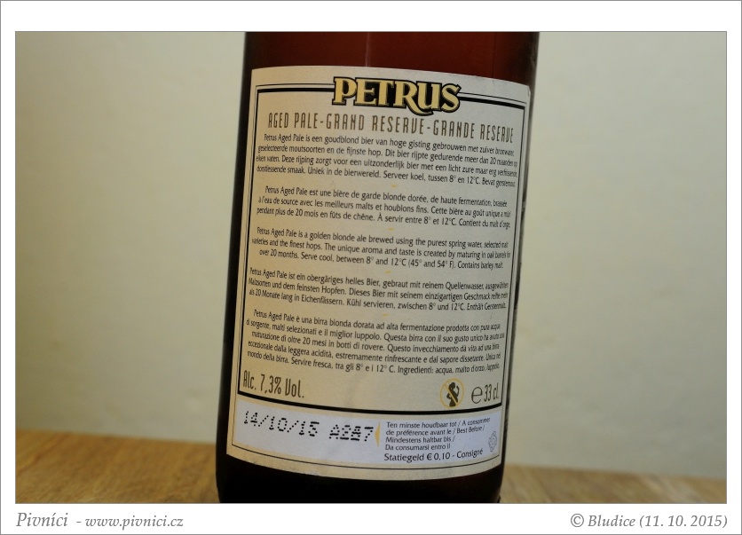 Zlatá barva, čiré, pěkná bílá pěna, velmi dobře drží.Vůně (4 - výborné):