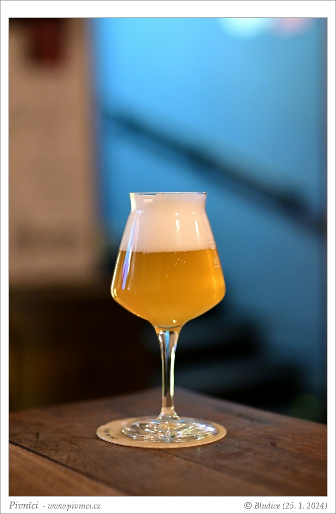 Zlatá barva, více zakalené. Pěkná světlá pěna, dobře drží.Vůně (3,5 - velmi dobré):