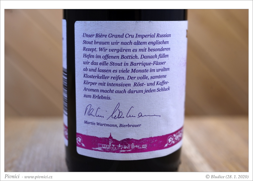 Chutné pivo, i když nějaké nedostatky by se na něm našly. Trochu prázdnější na takto silné pivo a osobně bych trochu ubrala karamelek.Lahvováno: srpen 2018