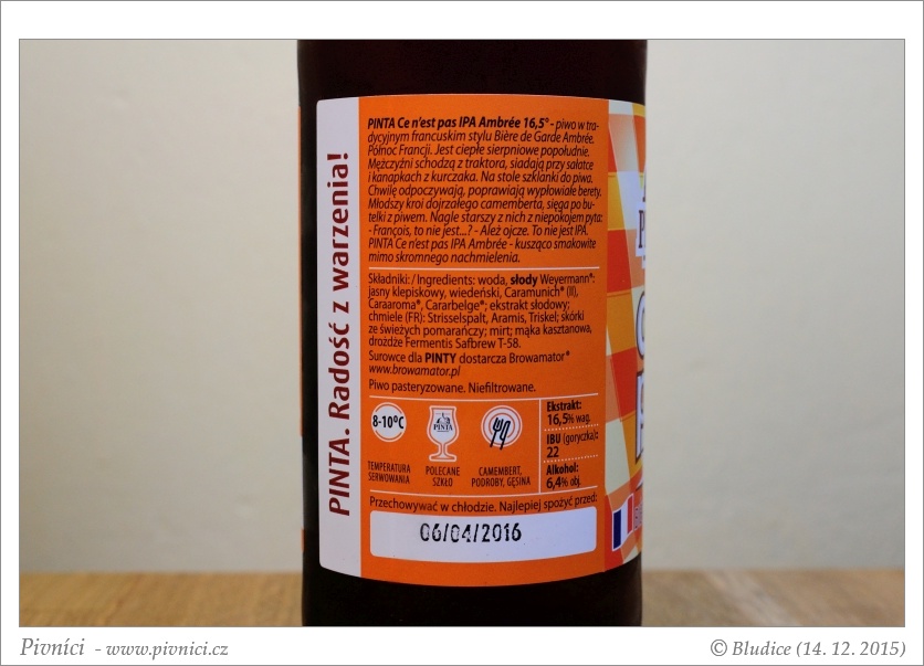 Fajn pivo, dobře se popíjí, ale spíše než čistá Bière de Garde připomíná některá belgická piva.Sledujte Pivníky