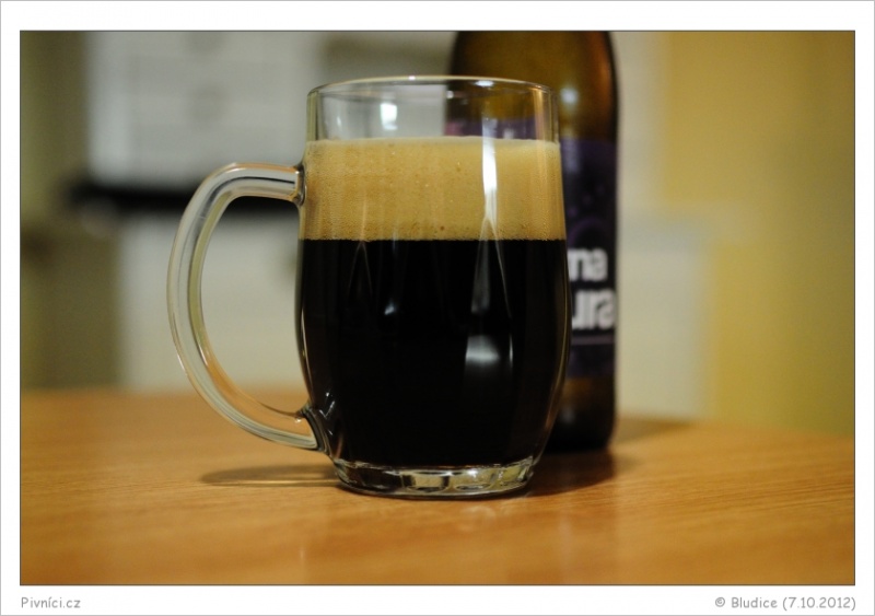 Barva tmavě mahagonová. Pěkná hustá stabilní pěna béžové barvy.Vůně (3,5 - velmi dobré):