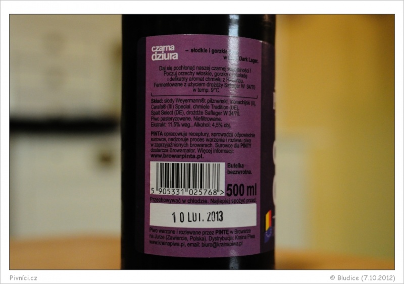 Výrazně pražený tmavý ležák.Minimální trvanlivost: 10.2.2013