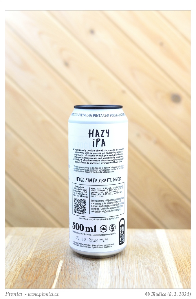 Fajn hazy IPA, velmi dobře se popíjí.Minimální trvanlivost: 26. října 2024