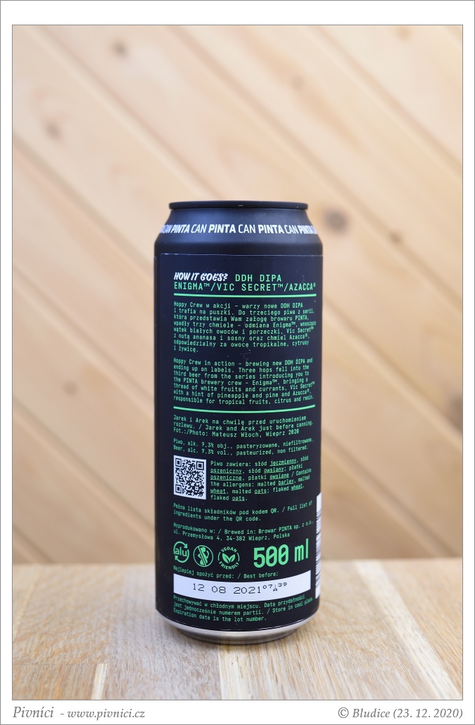 Šťavnatá a pěkně chmelená NEIPA. Výborně se popíjí.Minimální trvanlivost: 12. srpna 2021