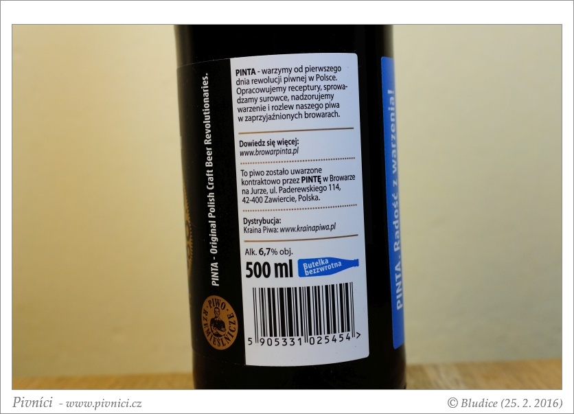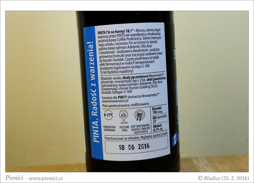 Chutný, pěkně vyvážená kávový stout. Velmi dobře se popíjí.Minimální trvanlivost: 18. června 2016
