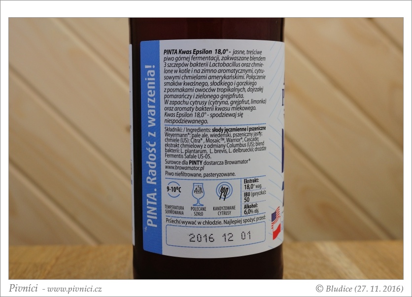 Chutný sladovější kyseláč. Dobře se popíjí.Minimální trvanlivost: 1. prosince 2016