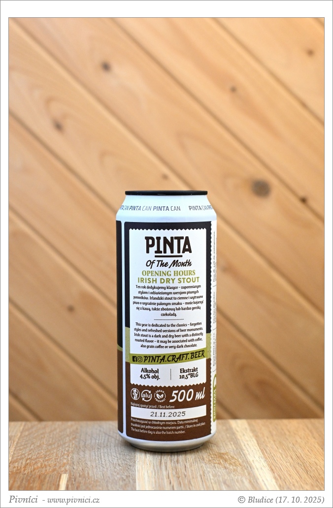 Chutný stout, velmi dobře se popíjí.Minimální trvanlivost: 21. listopadu 2025
