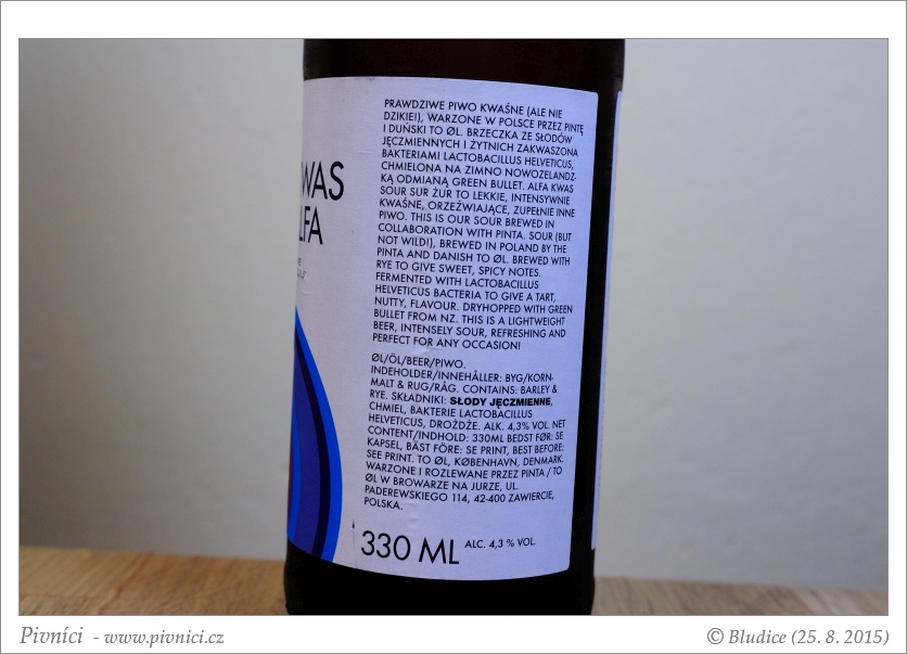 Jednoduchý, ale výborně pitelný kyseláč.Minimální trvanlivost: 22. října 2015