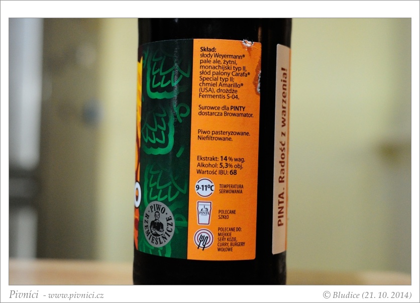 Docela hodně žitná IPA, příjemně chmelená, výborně pitelná.Sledujte Pivníky