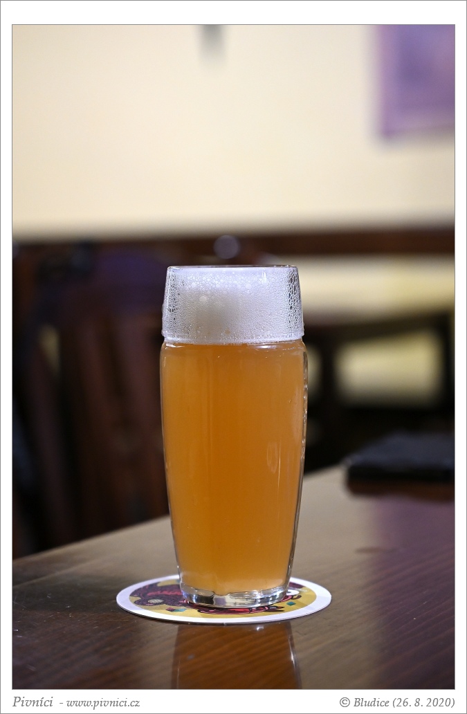 Barva zlatá, silně zakalené. Pěkná hustá stabilní pěna.Vůně (3 - dobré):