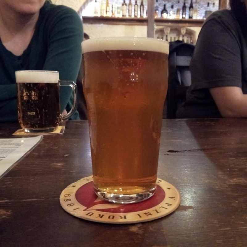 Barva zlatá, lehce zakalené. Pěkná hustá stabilní pěna.Vůně (2 - průměr):