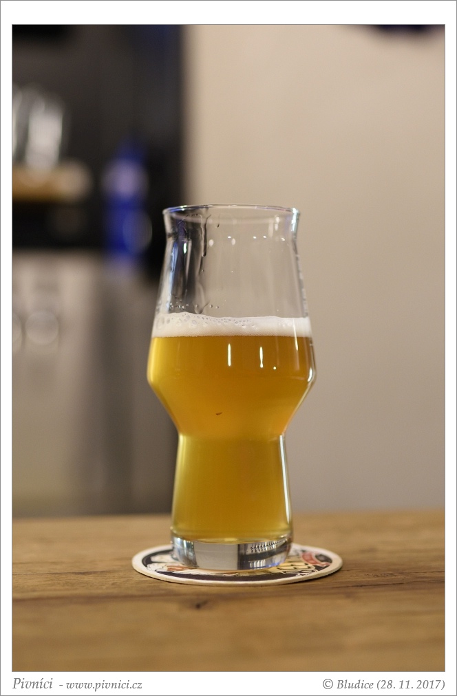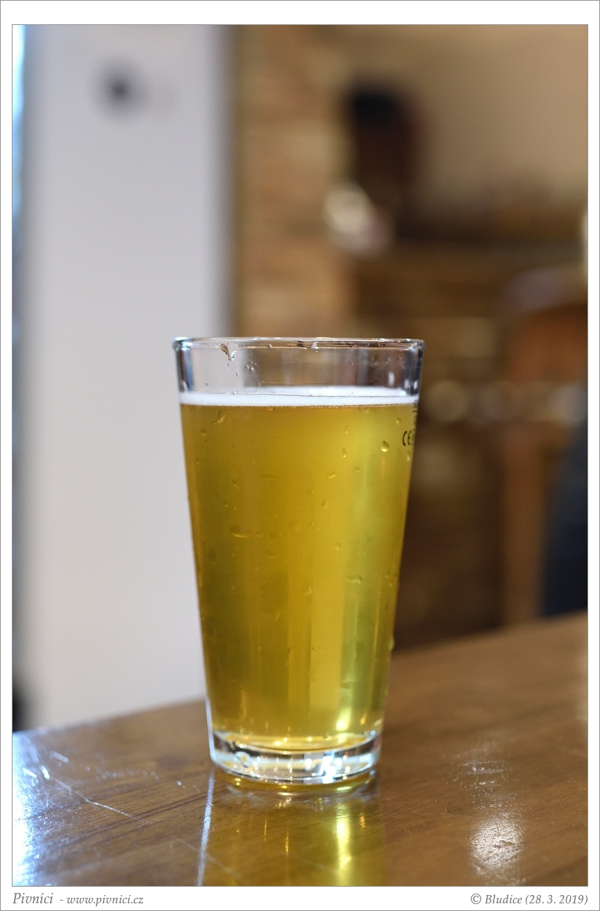 Zlatá barva, lehce zakalené, pěkná světlá pěna, dobře drží.Vůně (3,5 - velmi dobré):
