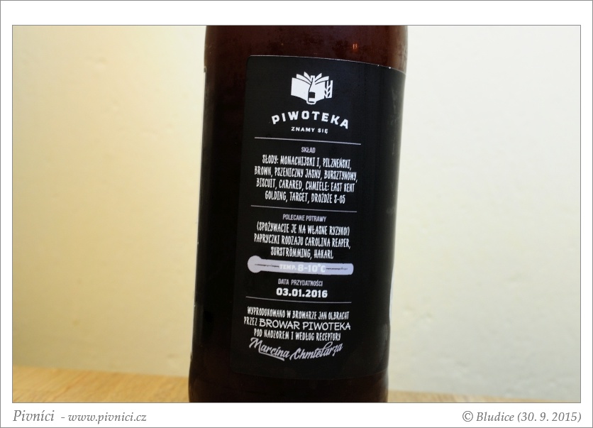 Kvasnicovější pivo s méně příjemnou kyselostí i hořkostí. Nepije se moc dobře.Cena 8,90 PLN za 0,5 l v Centrala Piwna v Poznani