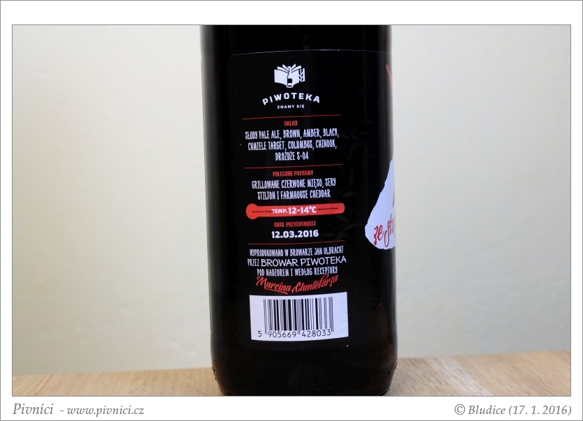 Fajn výrazněji chmelený porter. Dobře se pije.Minimální trvanlivost: 12. března 2016