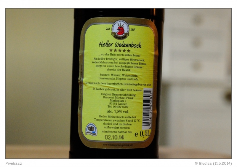 Chutný Weizenbock.Minimální trvanlivost: 2.10.2014