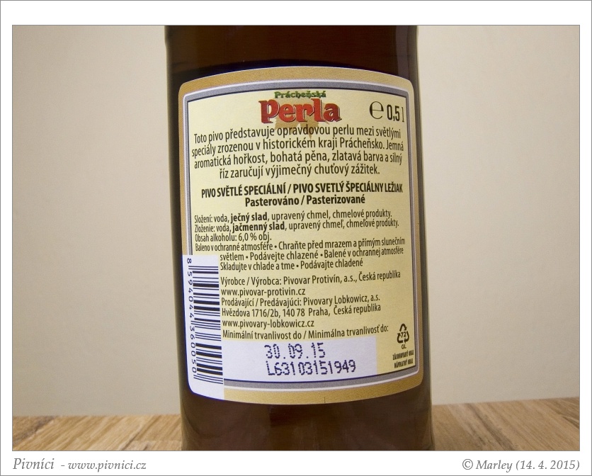 Lehce nadprůměrně pitelný hořkosladký speciál s méně příjemným závěrem.Minimální trvanlivost: 30. září 2015