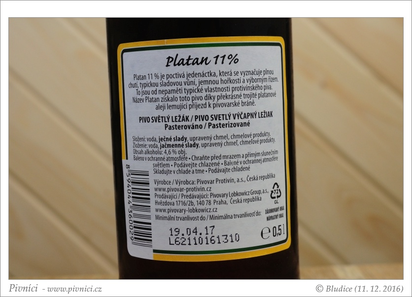 Průměrně pitelné pivo.Minimální trvanlivost: 19. dubna 2017