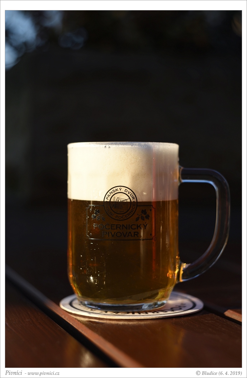 Barva světle zlatá, velmi lehce zakalené. Pěkná hustá stabilní pěna. Kroužkuje.Vůně (2,5 - lehce nadprůměr):