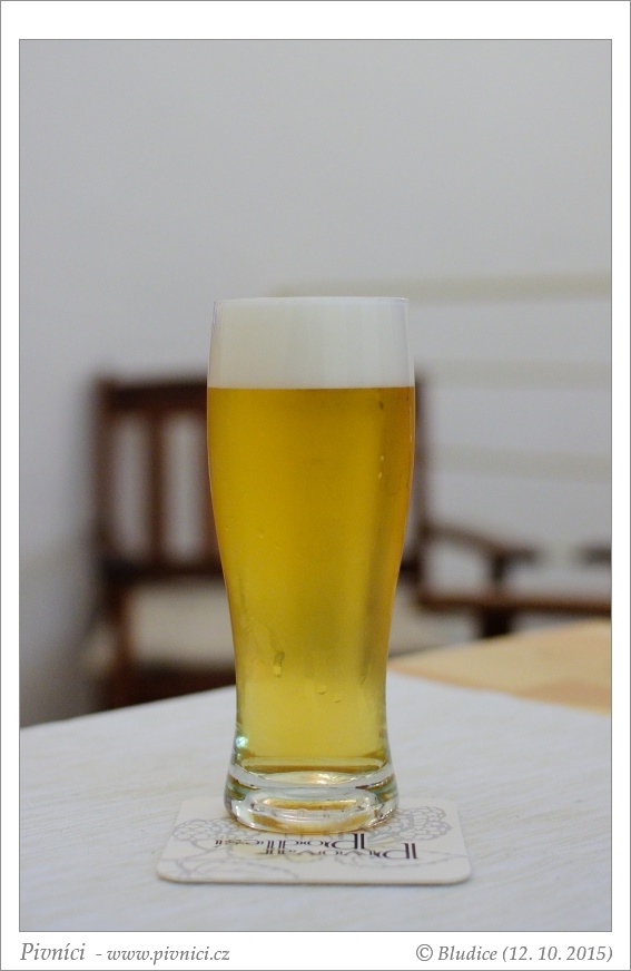 Světle zlatá barva, čiré. Pěkná bílá pěna, slušně drží, hezky kroužkuje.Vůně (3 - dobré):