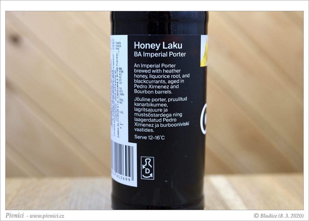 Vůně medová, lehce pražená, s tóny portského vína, nádechem černého rybízu, hořké čokolády, lékořice, bourbonu a alkoholu.Chuť (4 - výborné):