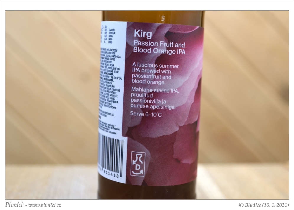 Vůně šťavnatá, s tóny tropického ovoce (mango, mučenka, ananas), pomerančů a lehce broskví.Chuť (4 - výborné):
