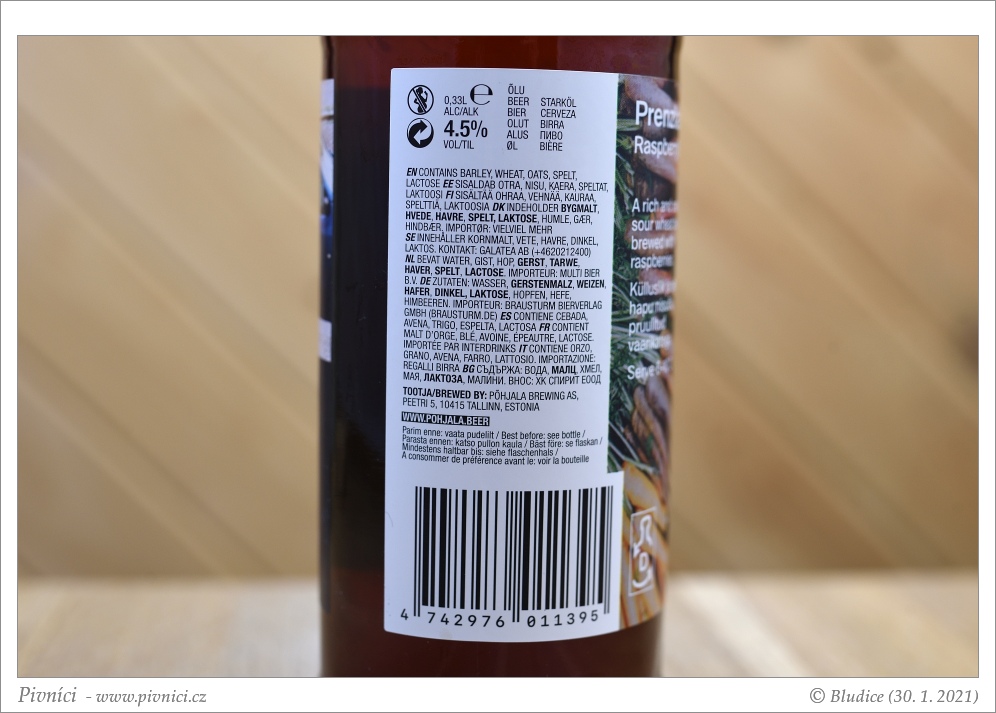 Vůně nakyslá, s tóny malin, obilným nádechem a nádechem vanilky.Chuť (3,5 - velmi dobré):