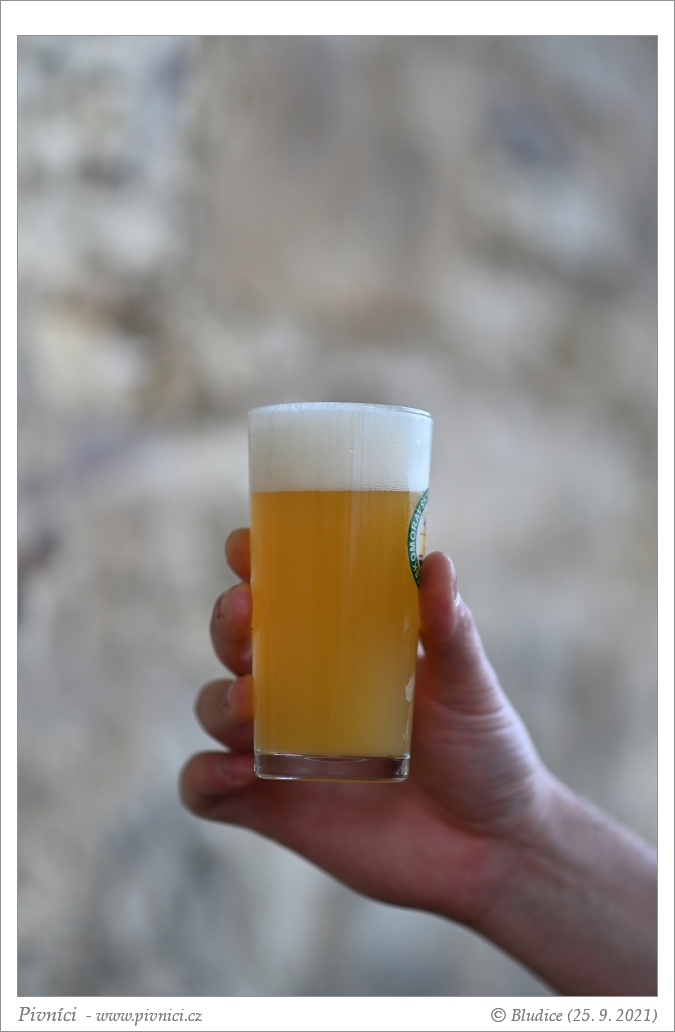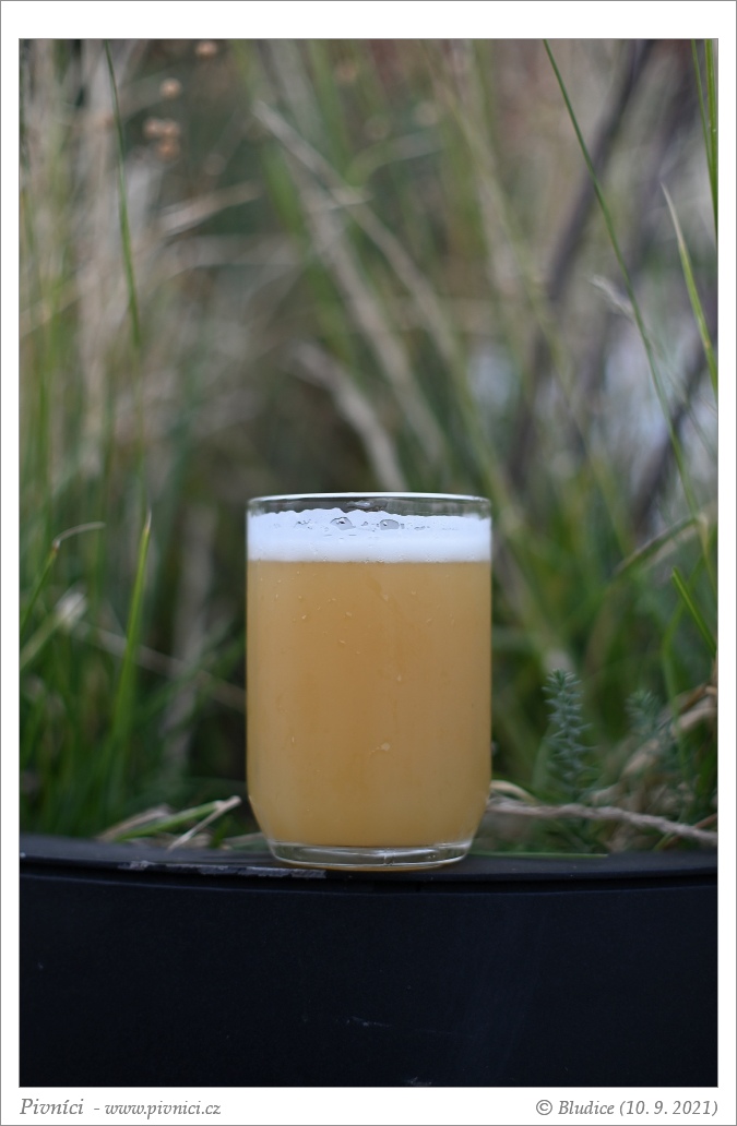 Světle zlatá barva, velmi zakalené. Pěkná světlá pěna, dobře drží.Vůně (4,5 - úchvatné):