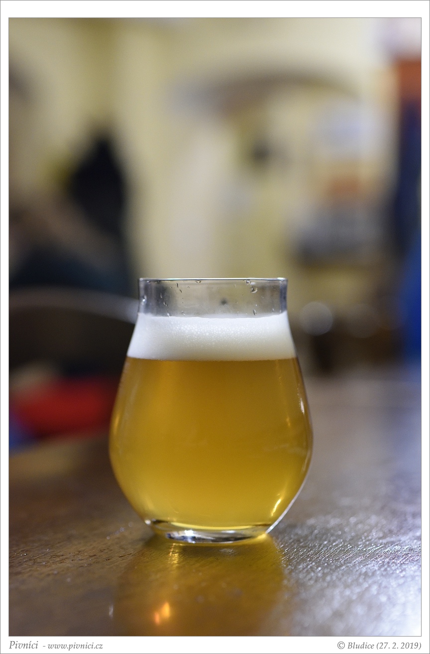 Barva zlatá, lehce zakalené. Pěkná hustá stabilní pěna.Vůně (2 - průměr):
