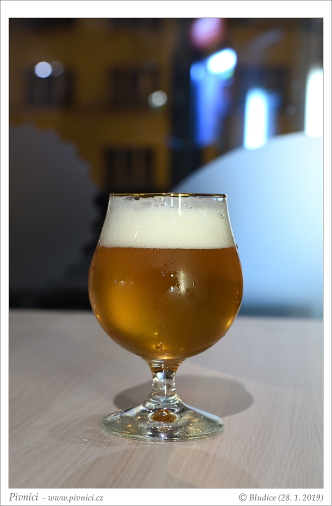 Tmavě zlatá barva, velmi lehce zakalené. Pěkná světlá pěna, dobře drží.Vůně (3,5 - velmi dobré):