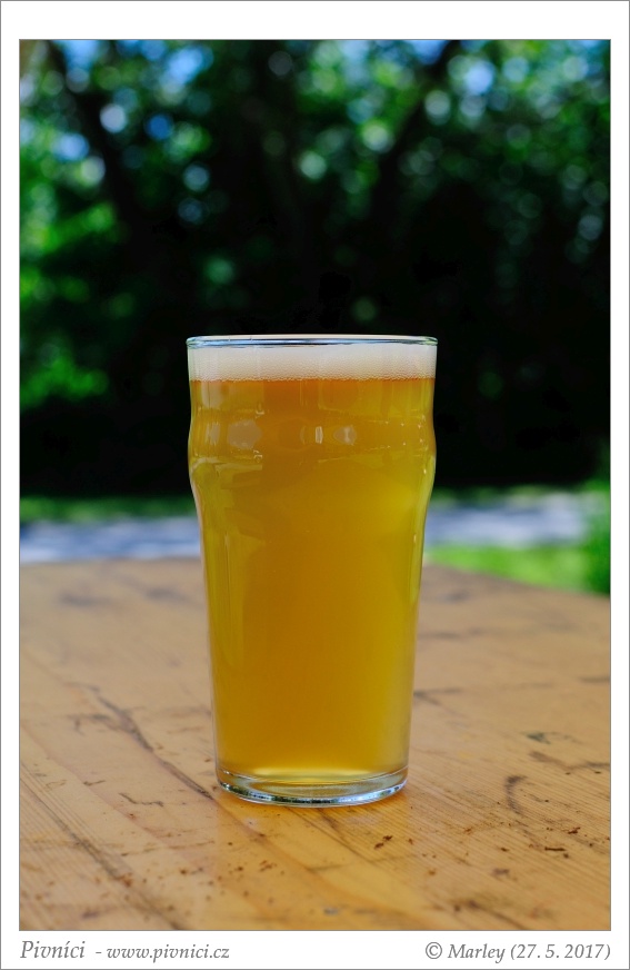 Zlatá barva, lehce zakalené, pěkná světlá pěna, dobře drží.Vůně (3,5 - velmi dobré):
