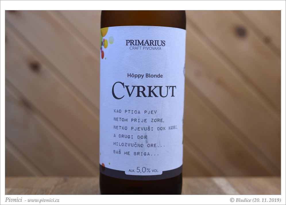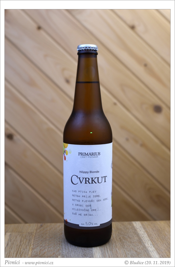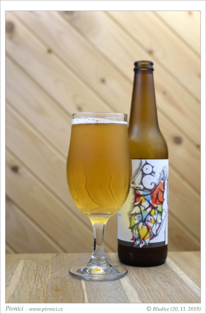 Zlatá barva, čiré. Slušná světlá pěna, dobře drží.Vůně (3,5 - velmi dobré):