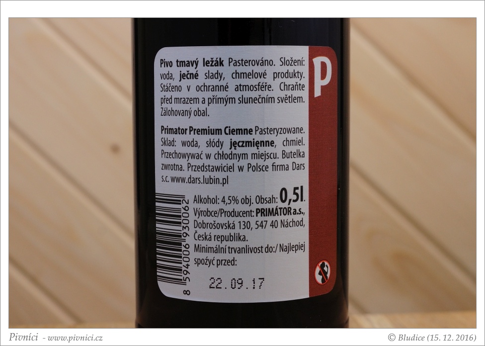 Celkem dobře pitelné pivo.Minimální trvanlivost: 22. září 2017