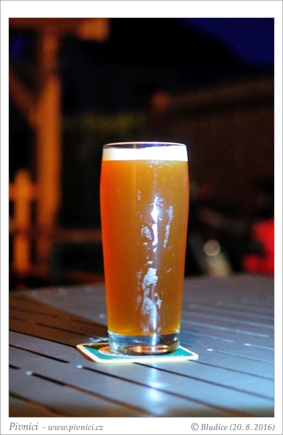 Světle měděná barva, středně zakalené, slušná světlá pěna, celkem drží, lehce kroužkuje.Vůně (2,5 - lehce nadprůměr):