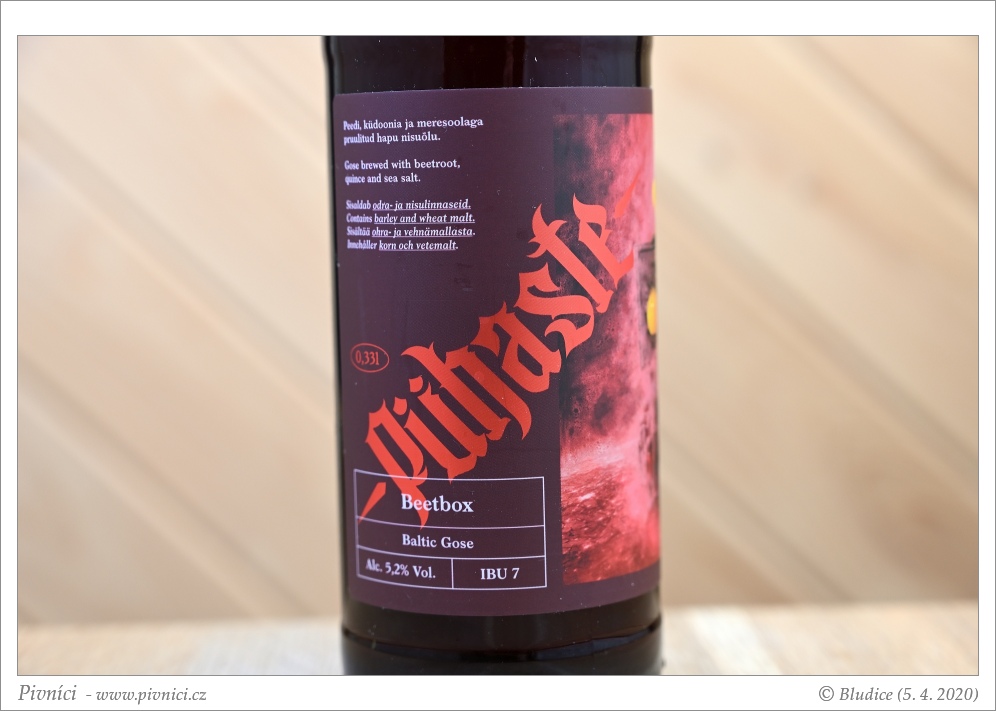 Vůně nakyslá, lehce sladová, s tóny červené řepy, se slaným nádechem.Chuť (3 - dobré):