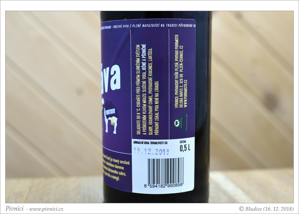 Chutný milk stout. Výborně se popíjí.Minimální trvanlivost: 19. prosince 2018