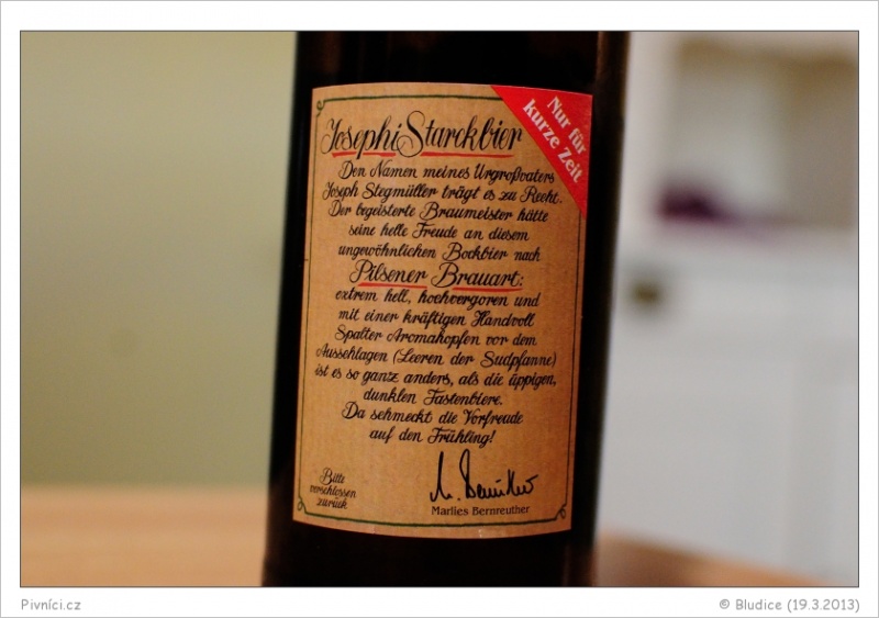Vydařený světlý bock, velmi dobře pitelný, jemný a květinově chmelový.Minimální trvanlivost: 5.8.2013