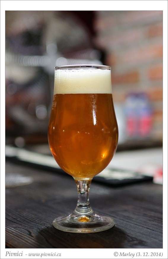 Tmavší zlatá barva, velmi lehce zakalené, pěkná světlá pěna, dobře drží, lehce kroužkuje.Vůně (2 - průměr):